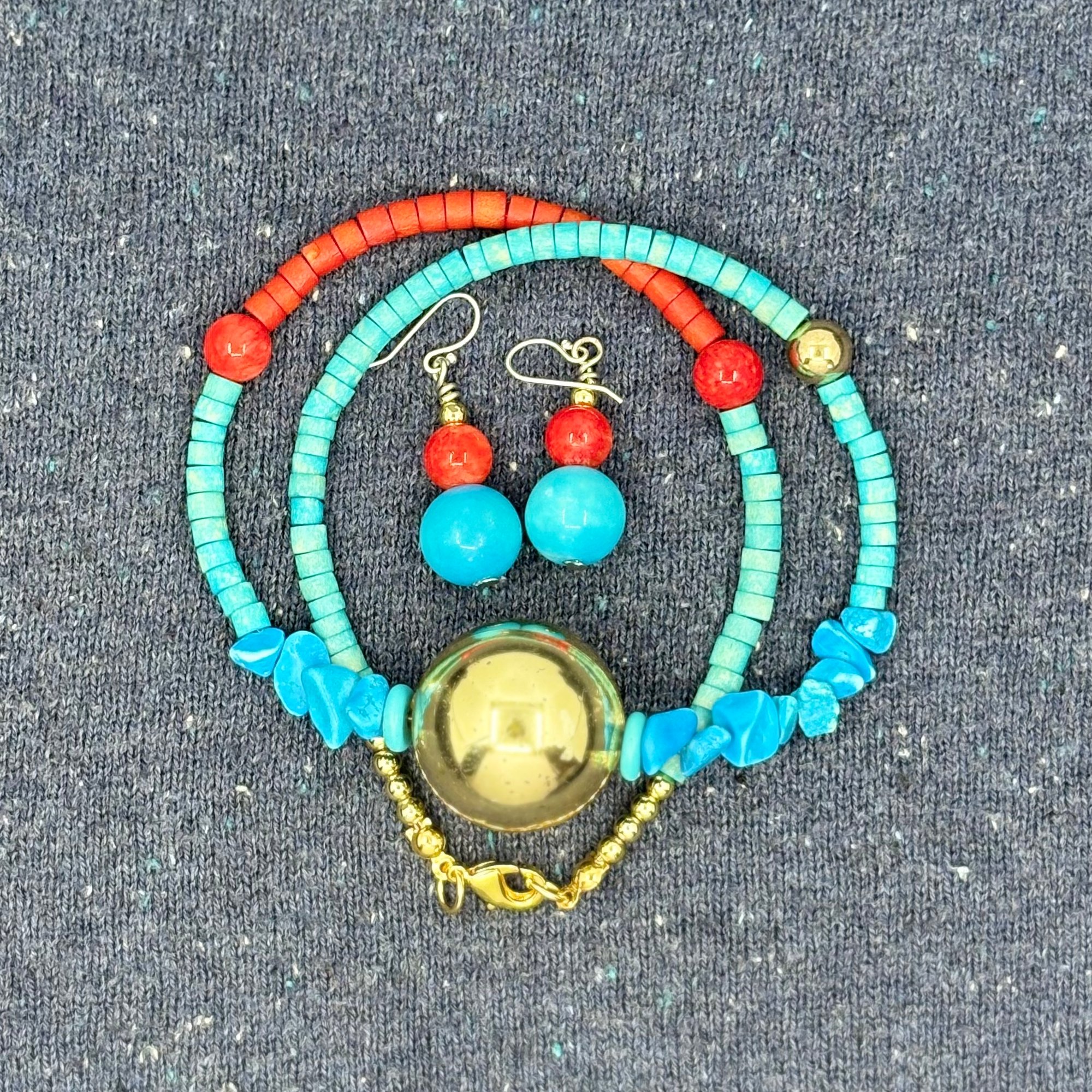 A unique necklace and earring duo, thoughtfully designed and handcrafted from preloved beads in a mix of materials… each bead reloved, revived and ready for a lunar elipse!