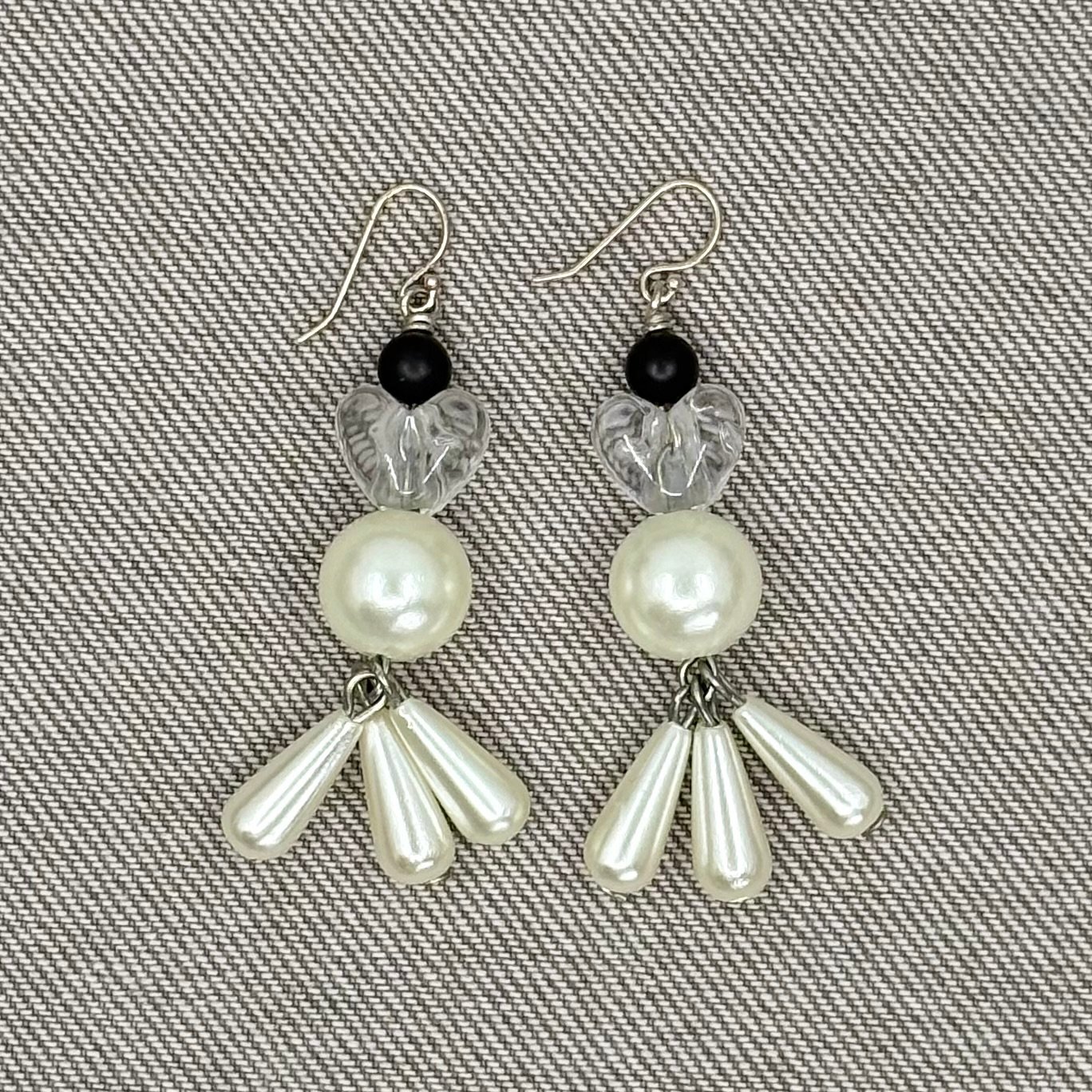 Thoughtfully handmade from preloved pearl beads and a clear heart. A drop of love falling from the lobe.