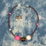 A unique necklace and earring duo, thoughtfully designed and handcrafted from preloved beads in a mix of materials… each bead reloved, revived and biding by the rule of 3.