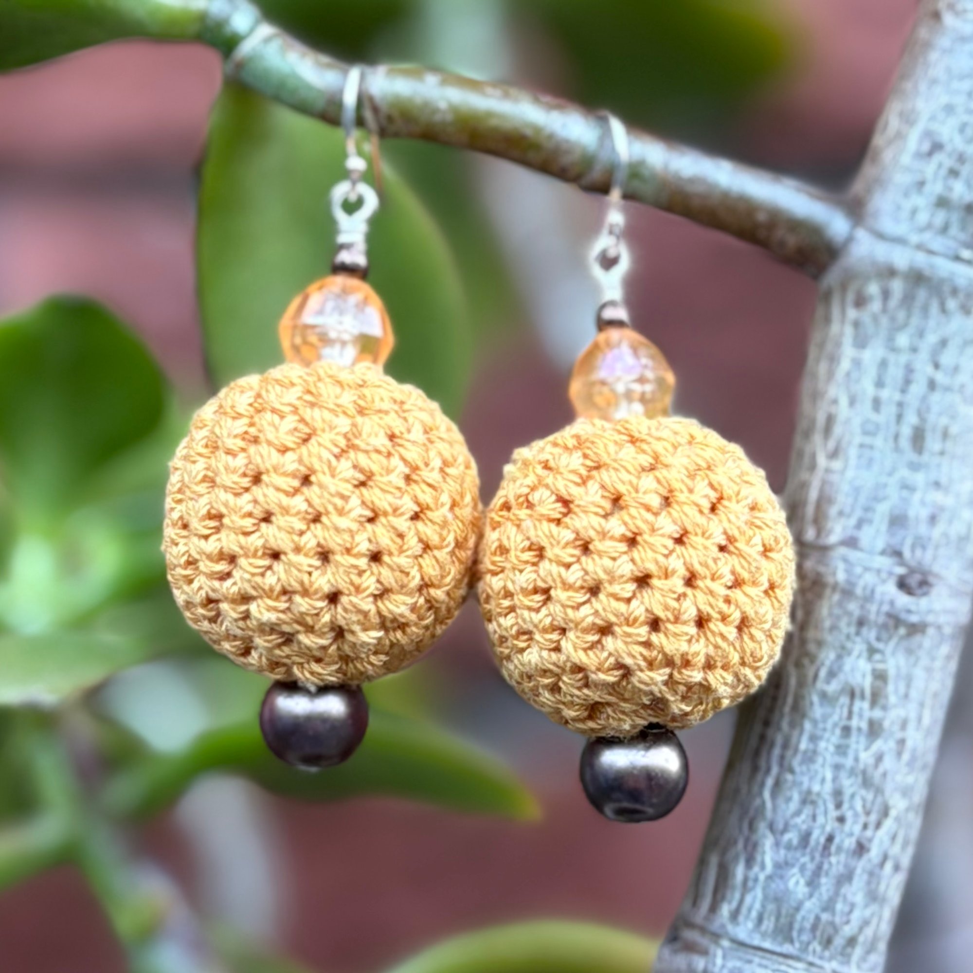 Thoughtfully handmade from preloved beads. A drop of zingy warmth falling from the lobe.