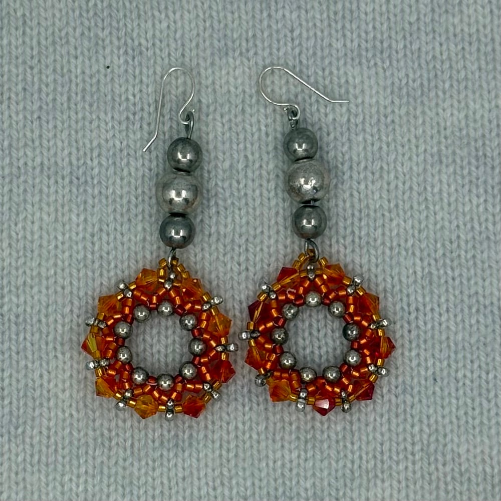 Beaded fire approx 2.5 cm. Earring drop approx. 5.5 cm
